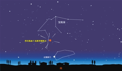 南寶瓶座δ流星雨極年夜時代輻射點地位表示圖